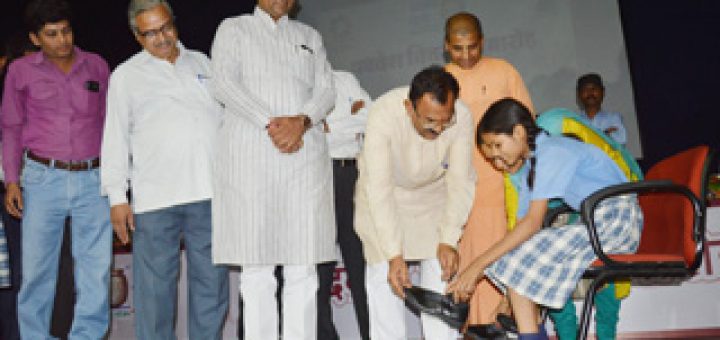 #2537 ================= 5 मई को अजमेर स्थित माध्यमिक शिक्षा बोर्ड के सभागार में आयोजित समारोह में राजस्थान के स्कूली शिक्षा मंत्री वासुदेव देवनानी ने सरकारी स्कूलों के चुनिंदा बच्चों को जूते और मोजे पहनाएं।...
